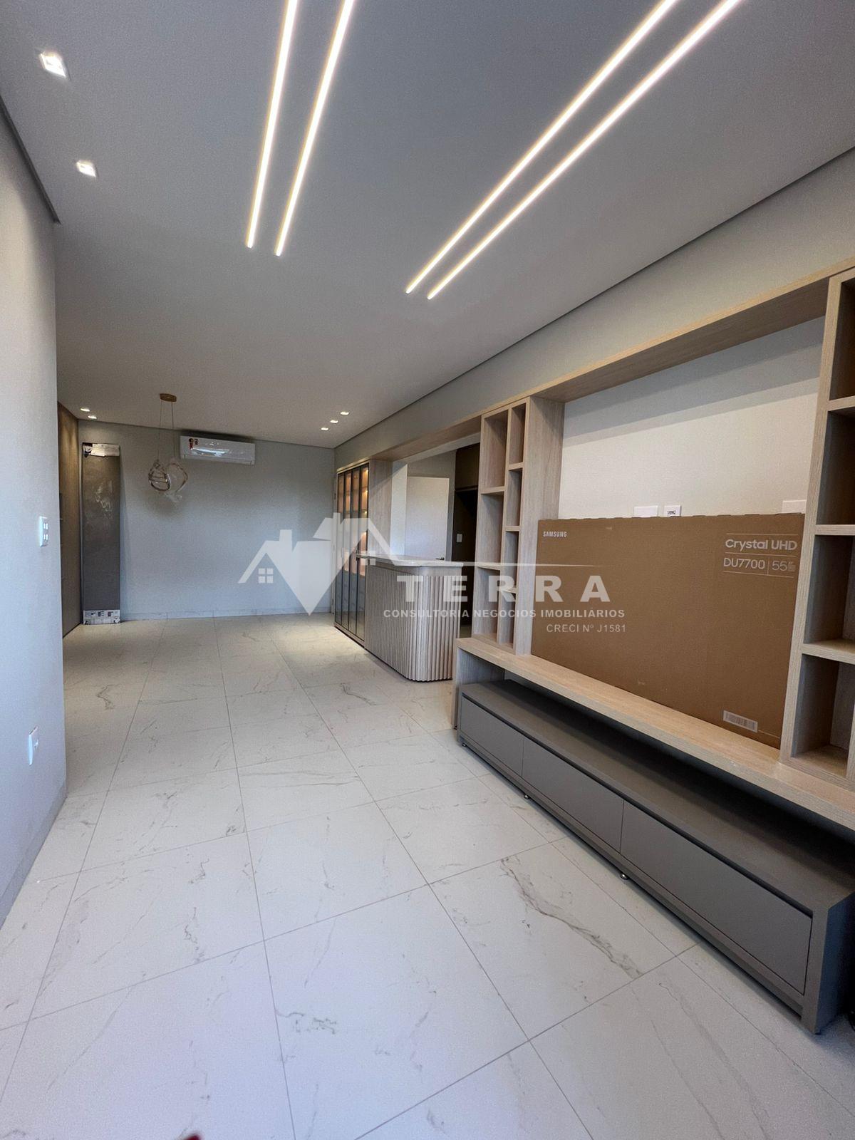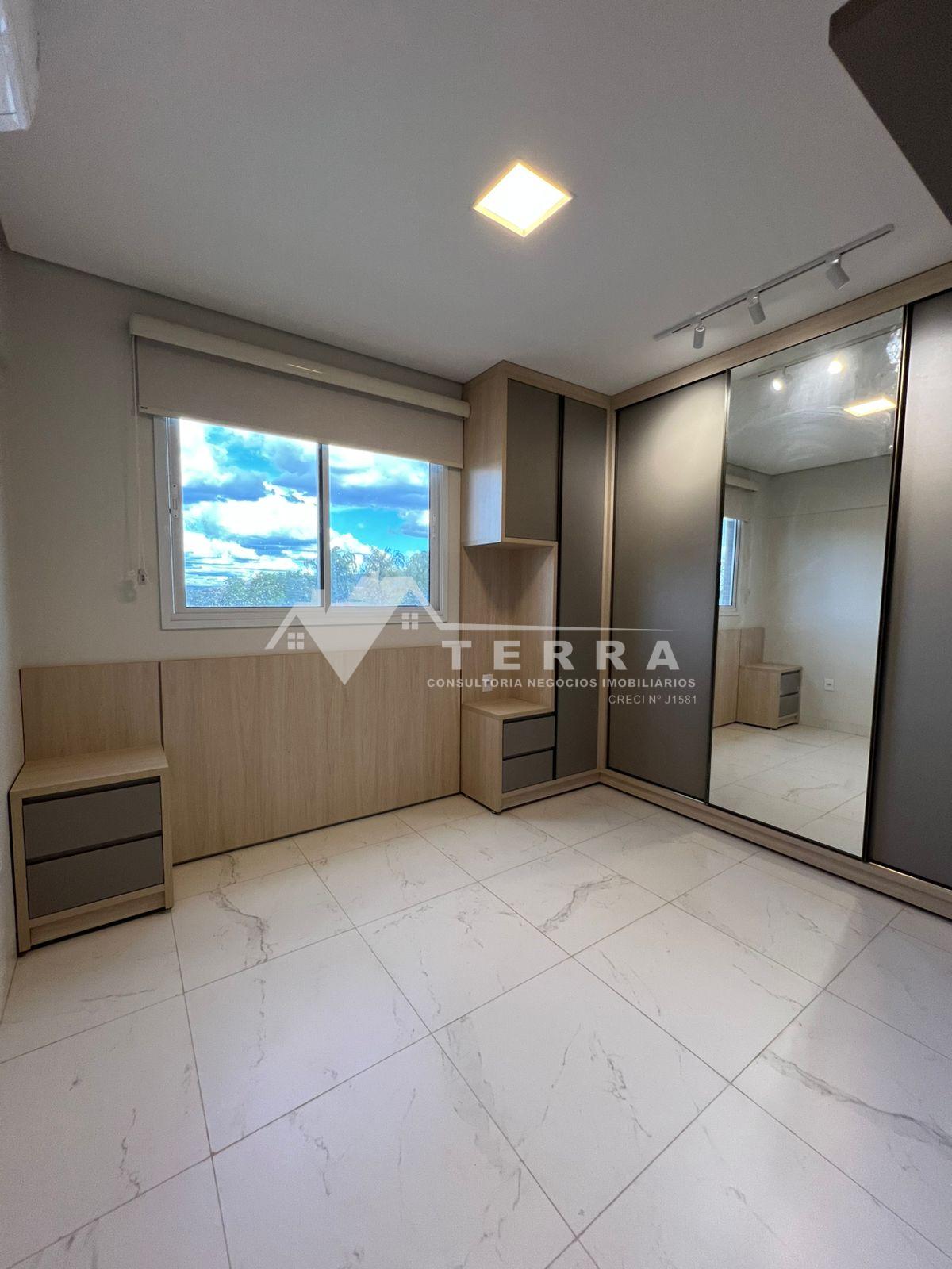 3/4 sendo uma suíte Quartos com armários planejados Sala com varanda Cozinha conjugada com lavanderia Banheiros com armários 2 vagas de garagens Condomínio: Área gourmet com piscina e churrasqueira Academia Portaria 24 hrs